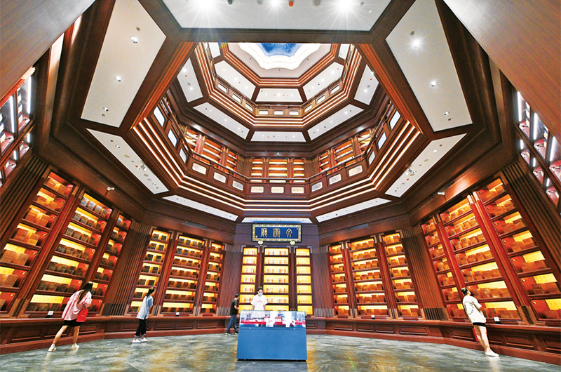增强实现中华民族伟大复兴的精神力量,离不开精神传统的承扬和开新。中国国家版本馆是国家版本资源总库和中华文化种子基因库,全面履行国家版本资源保藏传承职责。图为2022年7月30日,观众在中国国家版本馆中央总馆文瀚厅内参观。 新华社记者 李鑫/摄