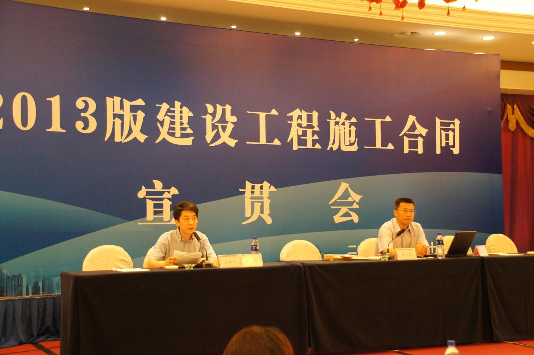 宣贯会邀请建纬(北京)律师事务所律师谭敬慧做新版《建设工程施工合同(示范文本)》的重点解读;邀请上海建纬律师事务所主任朱树英作执行新版《建设工程施工合同(示范文本)》以及管理新制度应注意的十二个操作问题的讲解。