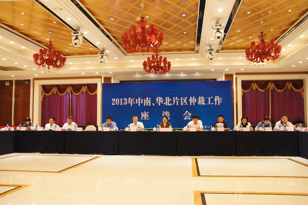6月21日上午,武汉仲裁委员会承办的“中南、华北片区仲裁工作座谈会”在汉召开。中南片的湖北、湖南、河南三省,华北片的河北、山西省、内蒙古自治区以及北京、天津市的43家仲裁委员会的代表共计80余人参加了此次工作座谈会。座谈会传达了2013年全国仲裁工作座谈会会议精神。参会代表围绕贯彻落实“十八大”精神,宣传推行仲裁法律制度的经验和建议;建立健全仲裁案件质量管控机制,提高仲裁机构公信力的经验和建议;探索仲裁案件调解技巧和艺术,提高仲裁案件调解和解率的经验和建议等议题进行了充分交流。