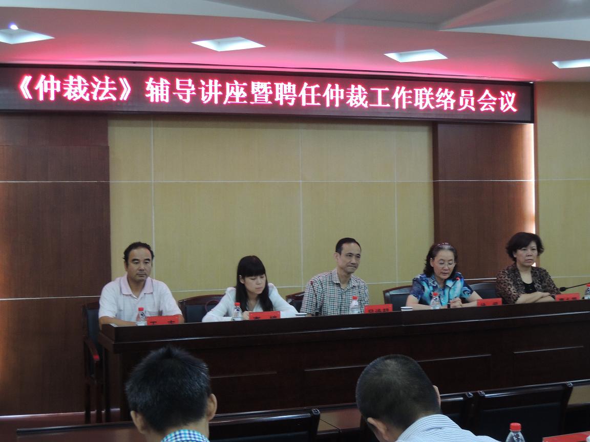 2013年9月4日,武汉仲裁委员会经济技术开发区仲裁分会与开发区普法办联合举办“《仲裁法》辅导讲座暨聘任仲裁工作联络员会议”,对在辖区部分重点企业中聘任的首批20名仲裁工作联络员进行辅导培训。参加辅导培训的有来自神龙汽车有限公司、东风汽车有限公司、武汉晨鸣汉阳纸业股份有限公司、可口可乐(湖北)饮料有限公司、湖北人信房地产开发有限公司、红金龙印务股份有限公司等20家企业法务、行管等部门负责人。武汉仲裁委员会经济技术开发区仲裁分会主任徐闻、副主任曹永萍,开发区普法办主任王丰,武汉仲裁委员会办公室发展处处长吕诗超出席会议。