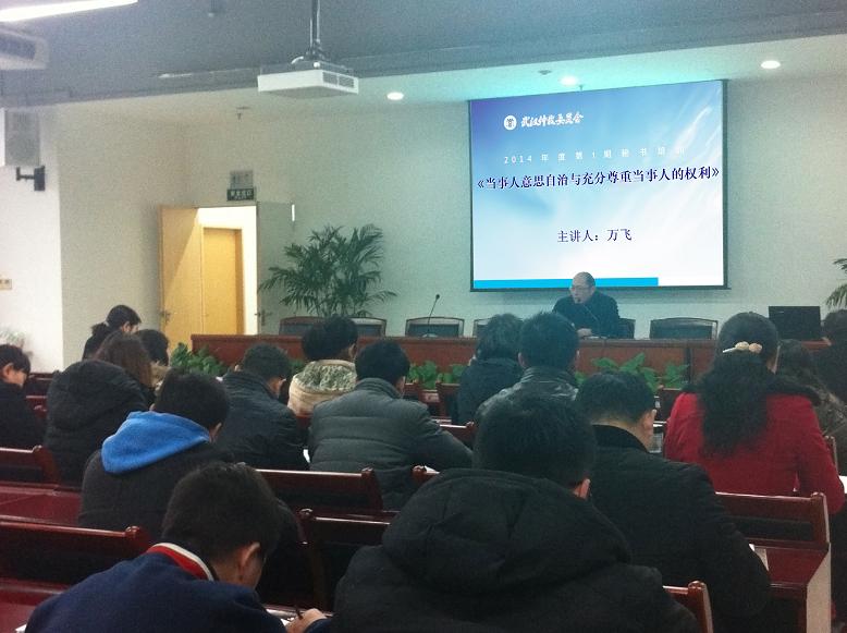 为了不断提高武仲秘书人员法律专业知识水平及对疑难问题的处理能力,进一步提升武仲秘书人员的业务操作能力,2014年2月27日下午,武仲举办了2014年度第一期秘书人员业务培训。武仲各部门及各分支机构办案秘书人员共39人参与了此次培训。知识产权院万飞院长作为本次培训的主讲人,为培训人员讲授了题为《当事人意思自治与充分尊重当事人的权利》的培训内容,他从“仲裁权来源于当事人的意思自治和私益权的让渡”、“充分尊重当事人的权利为仲裁人必须之责任”、“预夺当事人之权利,则仲裁权必失”和“仲裁人应保有仲裁意识和树立积极、正确的仲裁理念”这四个方面全面系统的阐明了当事人意思自治与充分尊重当事人的权利的重要性与必要性,再次向大家强调预夺当事人之权利的恶果。万飞院长用自己多年的工作阅历、思考汇集成2个小时的培训内容,参与培训的秘书人员均认真听、详细记,大家受益匪浅。