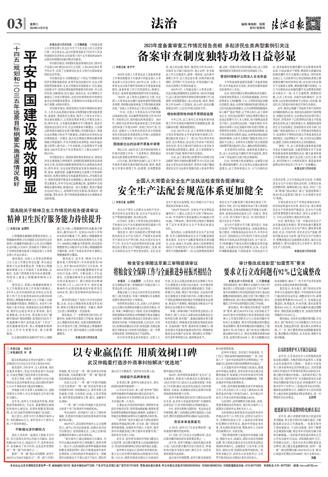 《法治日报》12月27日刊发报道《以专业赢信任 用质效树口碑 武汉仲裁委打造涉外商事纠纷解决“优选地”》,推介武仲大力发展涉外仲裁,积极推进仲裁国际化、专业化,全力打造涉外商事纠纷解决“优选地”的经验做法。